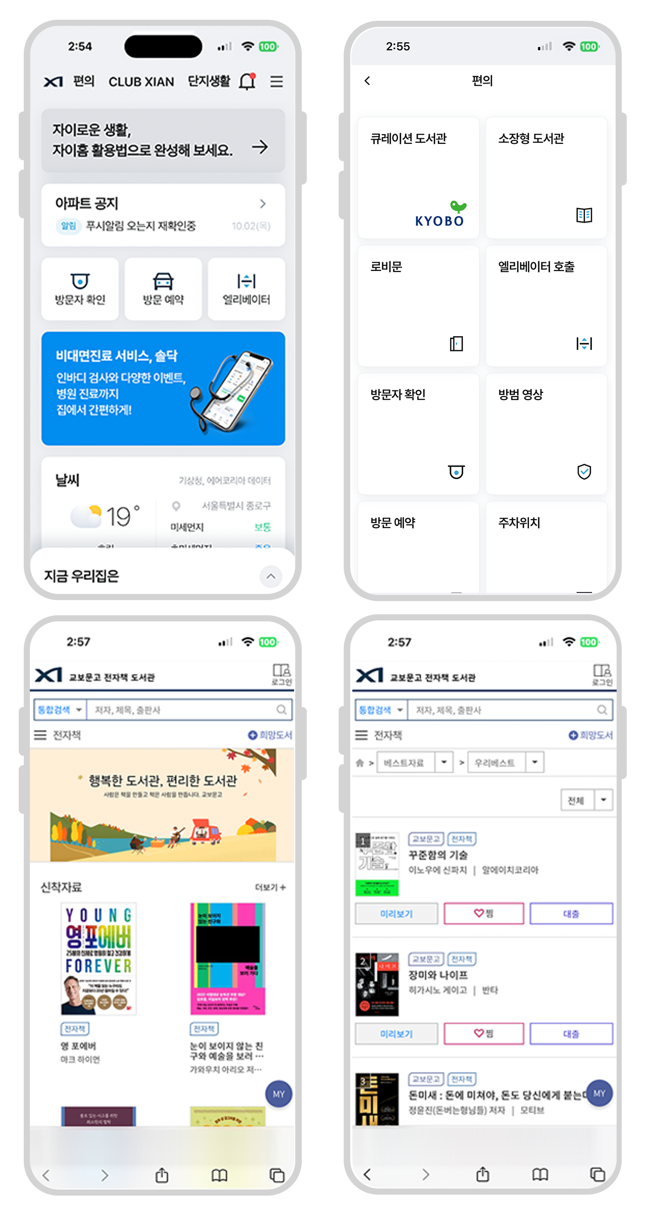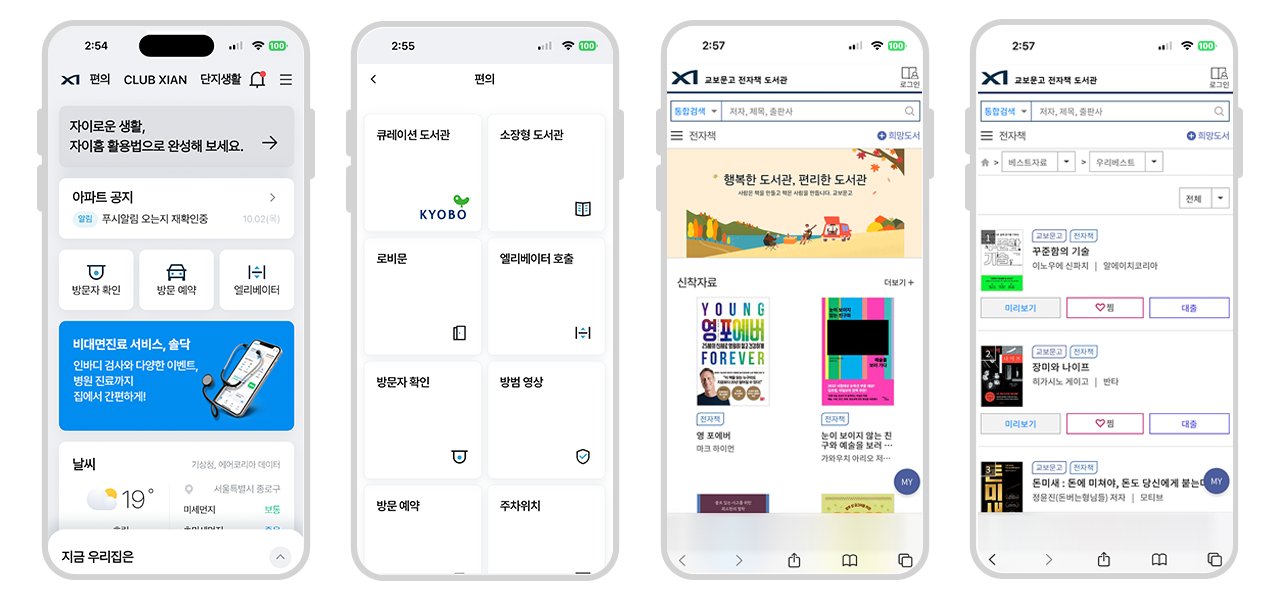 ‘자이홈’ 앱에 솔닥 비대면 원격 진료 서비스가 도입된 데 이어, 교보문고 전자도서관 서비스 이용이 가능해졌다. 교보문고 전자도서관에 큐레이션 기능이 더해지면서 자이 입주민에게 한층 풍요로운 독서 경험을 제공하게 된 것이다.