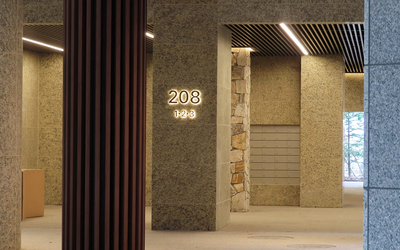 문라이트(MOON LIGHT)는 달빛을 콘셉트로 한 동 표시 사이니지다. 원거리에서 인지하기 쉬운 조명형 동 출입구 사이니지는 등불처럼 공간을 밝혀주며 보행자에게 안전함과 방향성을 동시에 제공한다. 가시성과 기능성을 확보하는 동시에, 지하 공간과 어우러져 감각적인 디자인 요소로서 공간의 완성도를 높여준다.