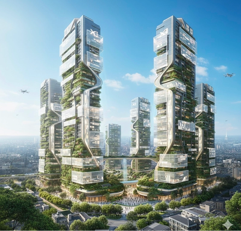 [그린 큐브]는 미래의 주거 기술을 상상하며 자연과 기술이 조화를 이루는 라이프스타일을 담은 작품입니다. ‘그린’은 실내에서도 자연을 느낄 수 있는 수직 정원을, ‘큐브’는 벽과 가구를 모듈화해 필요에 따라 공간을 자유롭게 바꿀 수 있는 구조를 뜻합니다. 고정된 집이 아닌, 미래형 플랫폼을 그리고 싶었어요. 머릿속에 떠오른 ‘변하는 집’의 이미지로 작품을 시작했고, AI와 대화를 나누면서 ‘공간이 스스로 모습을 바꾼다면 어떨까?’라는 상상을 발전시켰어요. 자이가 지향하는 미래를 시각적으로 표현할 수 있었다는 점이 가장 뜻깊었습니다.