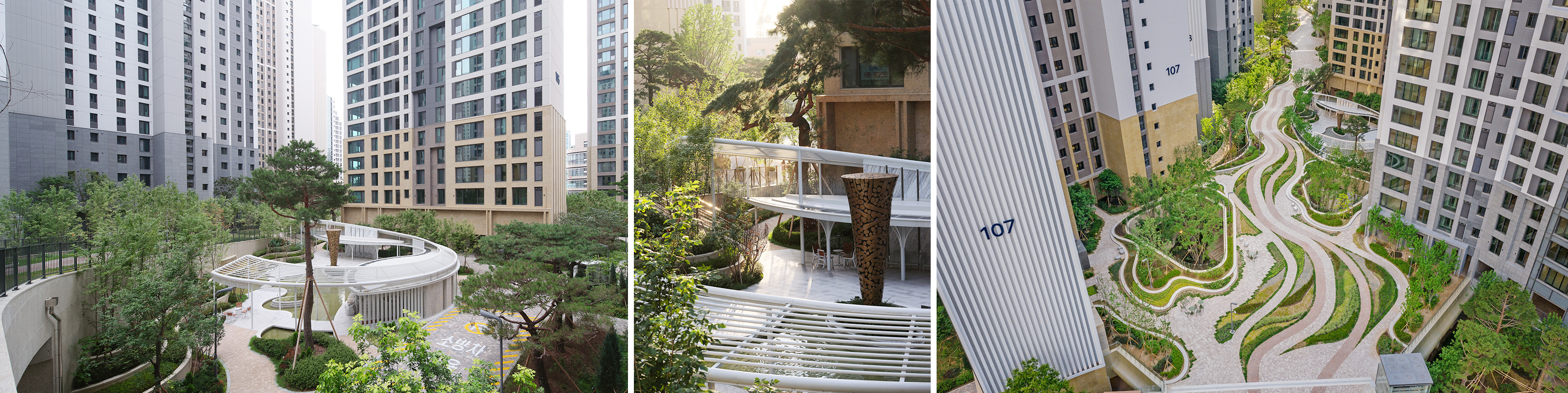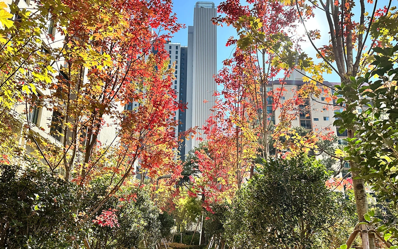 “과거의 기억을 품으면서도, 새로운 이야기를 써 내려가는 공간으로 다시 태어나고자 했습니다. 그래서 주민들의 기억을 담은 다양한 단풍나무를 심었고, 이를 크고 작은 정원들이 연결되는 입체적인 구성으로 조성했습니다. 변화하는 단풍 풍경 속에서 산책을 즐기고, 아이들과 함께 단풍잎을 주워 작은 추억을 만들며, 사계절의 빛깔로 물드는 집 앞 정원을 마주하는 특별한 순간을 경험하시게 될 겁니다.” – GS건설 조경 담당 황광일