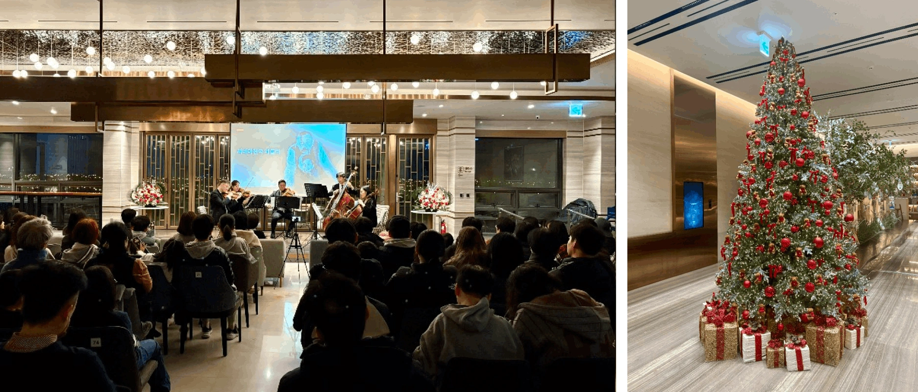 클럽자이안의 카페테리아에서는 매년 크리스마스 음악회를 열고 있어요. 올해는 현악 5중주로 구성했어요. 비발디, 모차르트 같은 클래식, 아이들이 좋아하는 <겨울왕국> 등의 영화음악, 크리스마스 메들리 연주를 함께 들으며 연말의 설렘과 따뜻함을 느낄 수 있었어요.