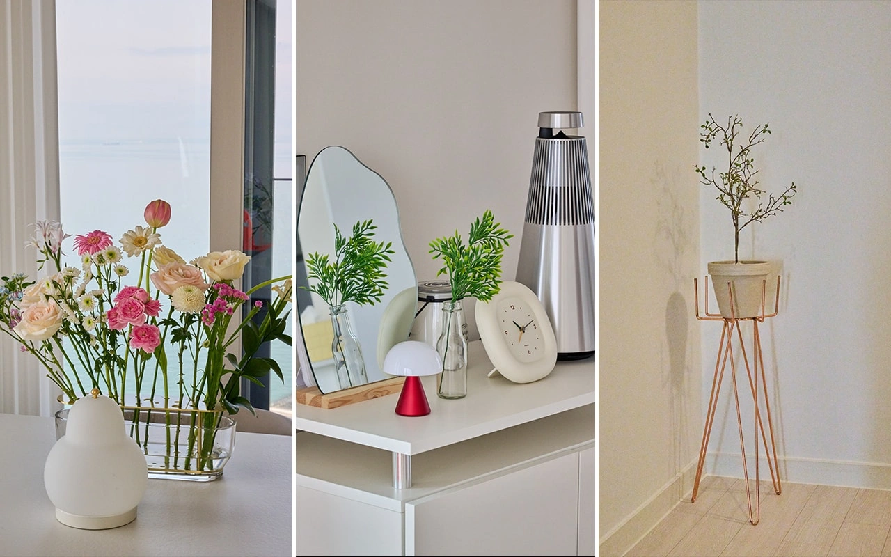 꽃과 아이들의 그림, 모던하고 심플한 소품으로 완성한 공간 디테일. 인테리어는 자신만의 취향을 찾아가는 과정이다