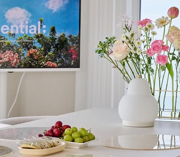 그 과정에서 찾은 새로운 취향은 ‘꽃’이었습니다. 사실 꽃에 별 관심이 없었는데 지인이 집에 놀러 오면서 선물해준 꽃다발이 계기가 되었어요. 그저 예뻐서 샀다가 모셔만 두던 화병에 꽂았는데 순간 “와~”하는 감탄사가 나오더군요. 꽃 몇 송이로 공간의 분위기가 확 바뀌었거든요. 그때부터 꽃은 저희 집의 일상이 되었고 식탁이나 거실 테이블 위엔 항상 꽃이 자리 잡고 있습니다.