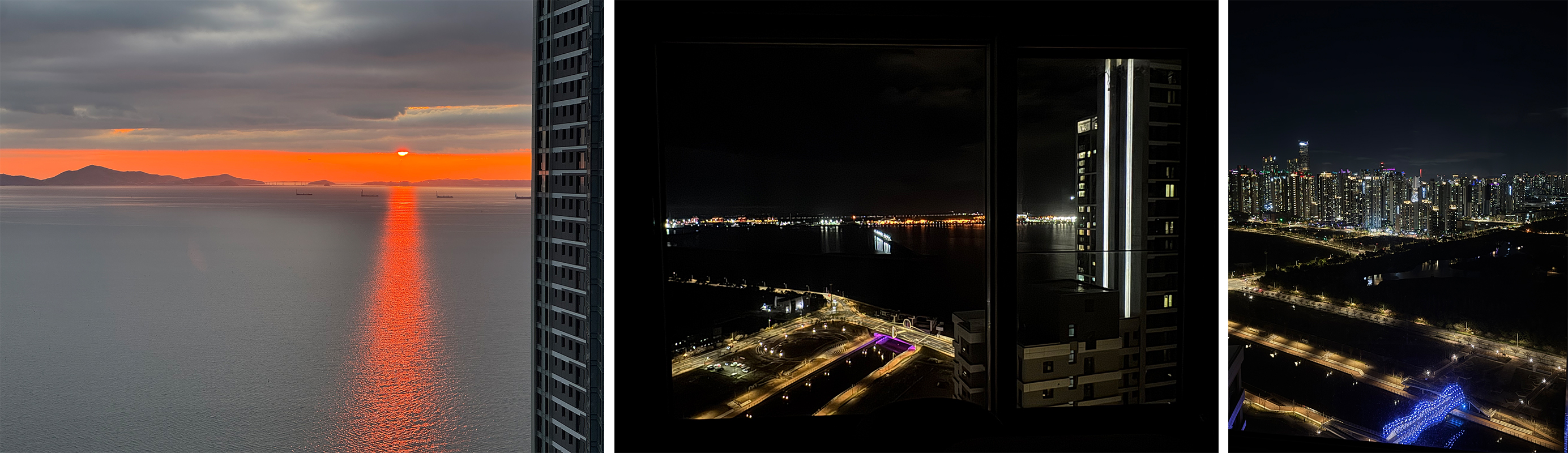 거실에서 바라본 저녁 노을과 야경