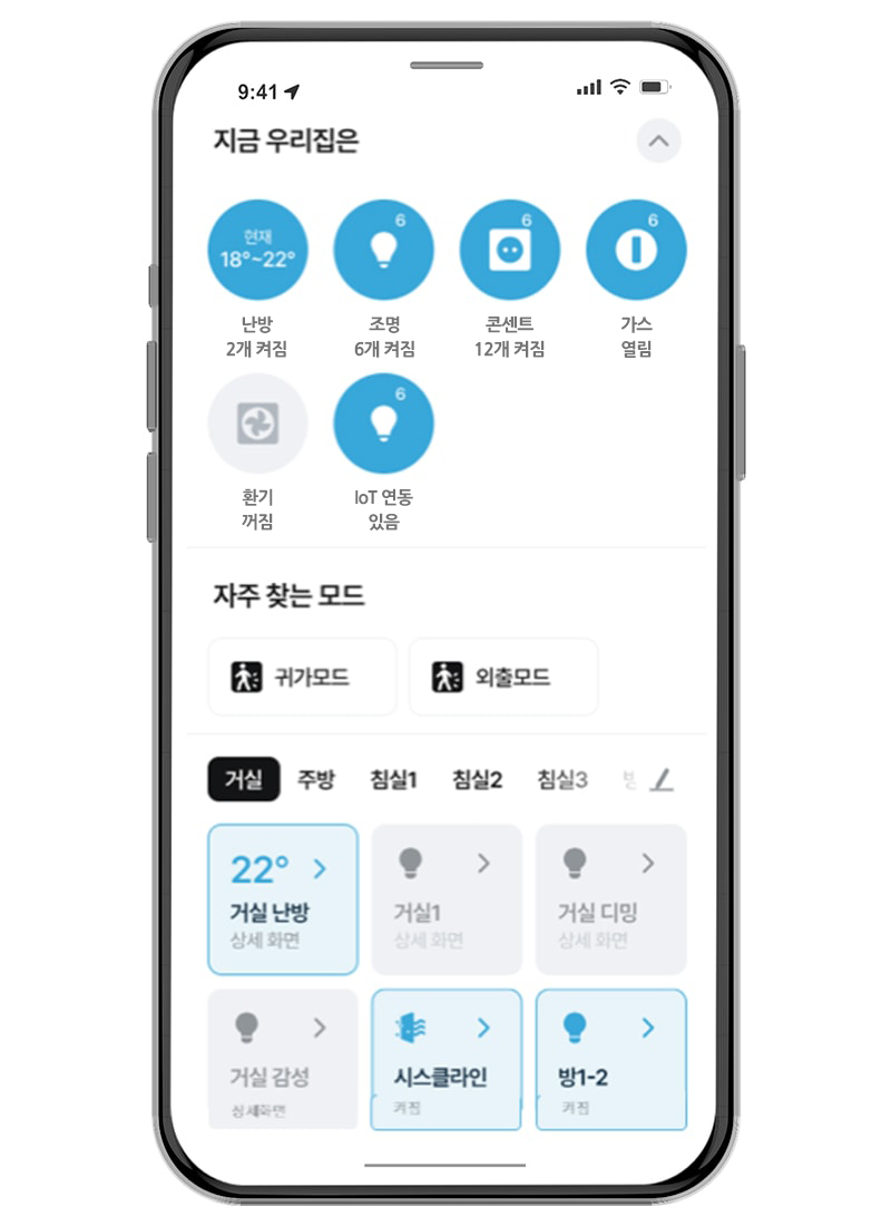 조명, 냉/난방, 실내환기 등 최적의 실내 환경을 집 밖에서도 제어할 수 있다.