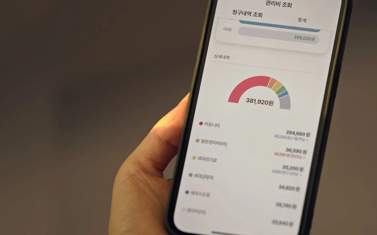 자이홈에서는 관리비 조회뿐 아니라 항목별 상세내역, 월별 통계도 확인할 수 있다.