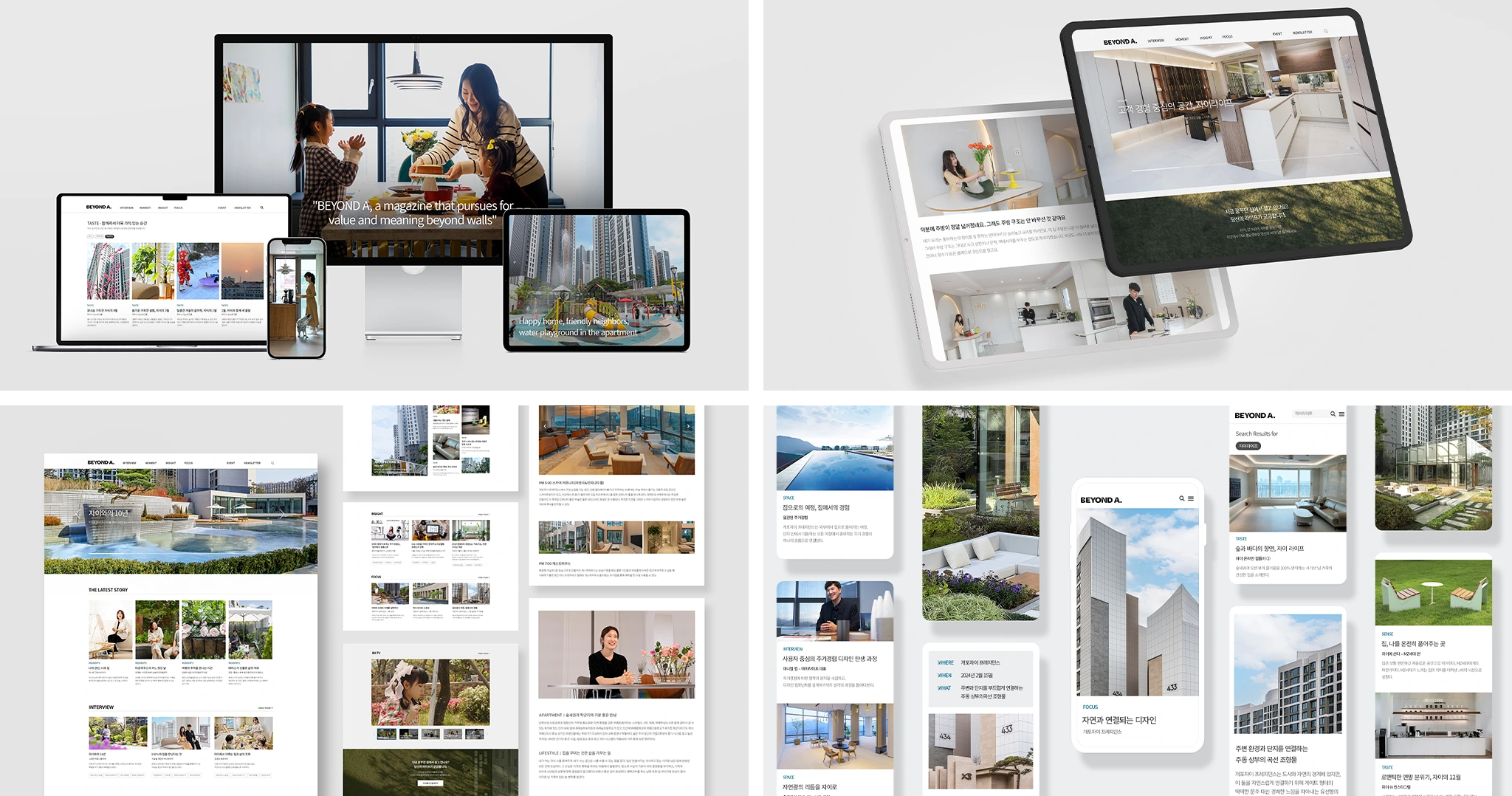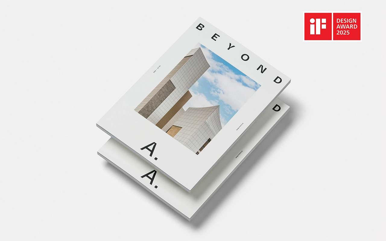 ‘BEYOND A.’는 업계 최초의 디지털 주거 미디어 플랫폼으로, 매주 콘텐츠를 발행한다. 지난해에는 그동안 발행한 디지털 콘텐츠 중 일부를 엄선해 프린트 매거진의 형태로 <BEYOND A.> 브랜드 북을 출간했다. 디지털이라는 큰 흐름 속에 ‘브랜드의 시간’을 종이 위에 남겨 곁에 두고 반복적으로 열어볼 수 있는 매체를 만들어 단순한 기록을 넘어 브랜드 철학을 전하는 아카이브의 가치를 더하고자 했다. 그리고 이번 ‘iF 디자인 어워드 2025’에서 <BEYOND A.> 웹사이트는 디지털 플랫폼으로 사용자 인터페이스(UI) 부문 본상을, <BEYOND A.> 브랜드 북으로 커뮤니케이션 부문 본상을 수상했다.