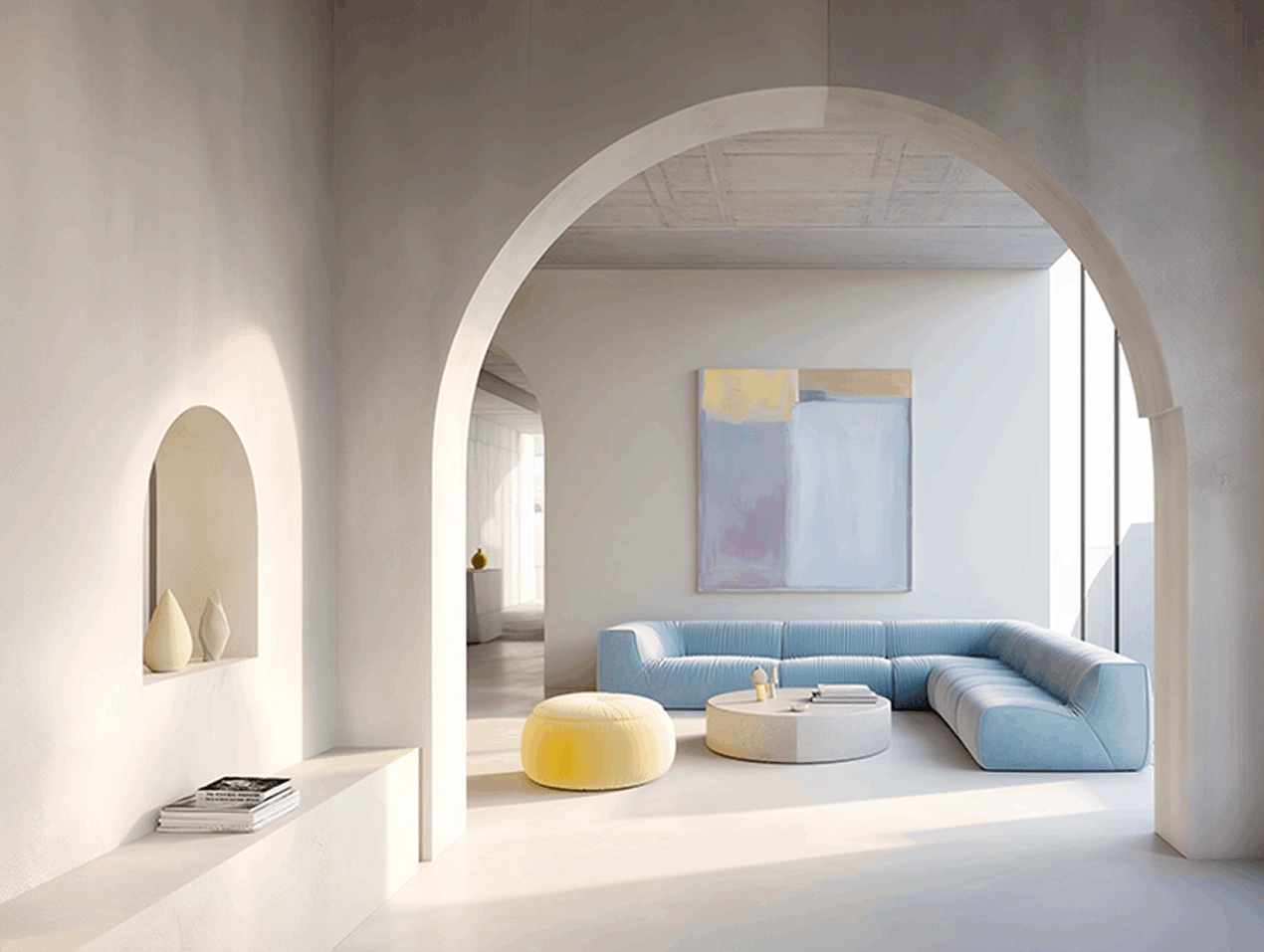 날카로운 직선 대신 곡선 벽, 라운드 모서리, 부드러운 기하학 가구로 심리적 안정감을 주는 인테리어가 확대된다. 곡선 계단, 아치형 개구부, 라운드 카운터를 도입한 카페·갤러리·주거 리노베이션 프로젝트가 소셜 미디어에서 꾸준히 확산되며 트렌드에 힘을 더하고 있다.