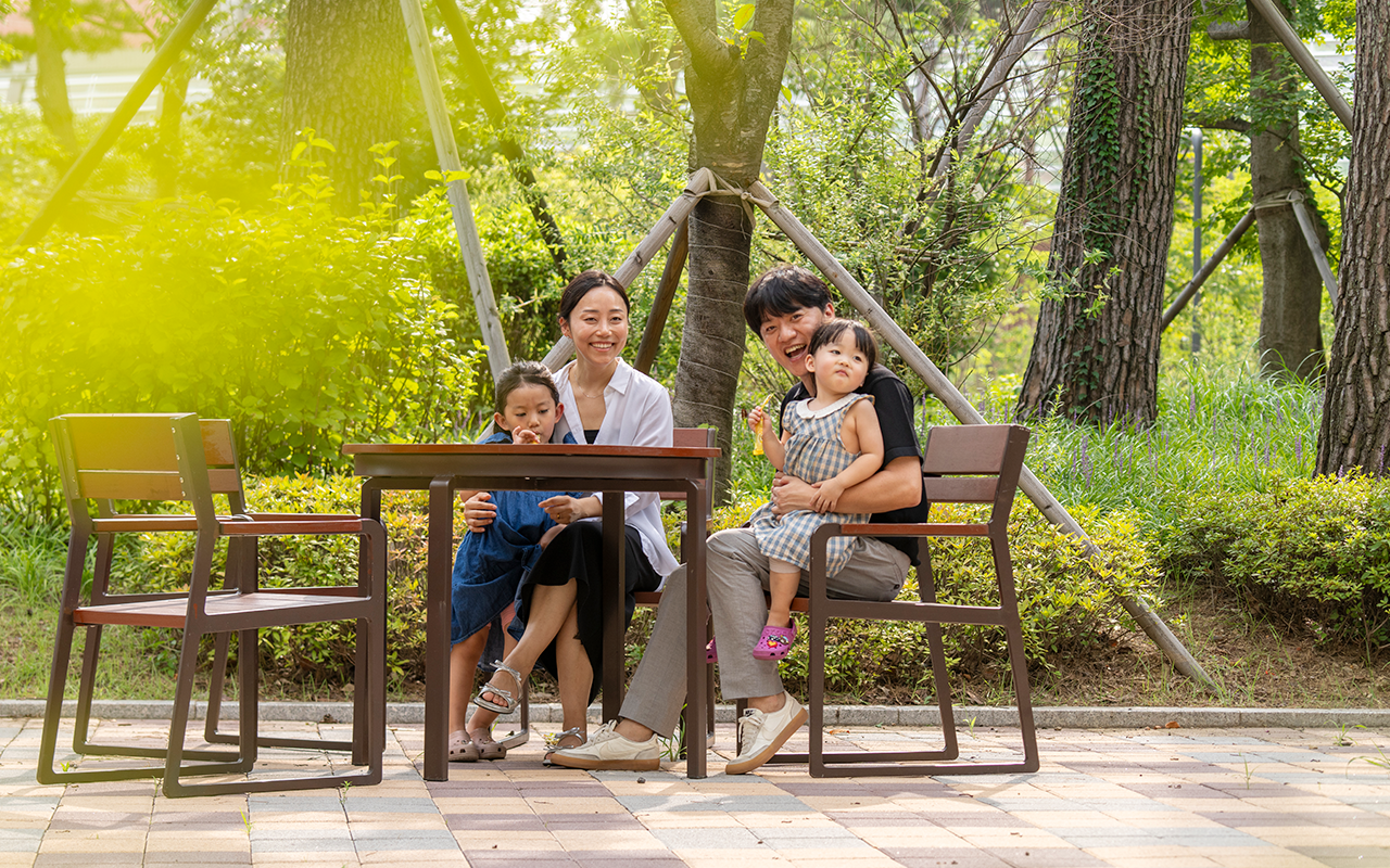 꼭 놀이터에 가지 않더라도 단지 안에 차들이 안 다니니까 아이들을 그냥 마음껏 뛰어놀게 해줄 수 있는 점도 좋아요. 단지 안에 미세먼지 신호등이 있어서 공기가 안 좋으면 주황색이 되거든요. 아이들이 그걸 보고 ‘오늘은 주황색이니까 집에 가야겠다’ 하면서 집에 들어가기도 하고, 반대로 초록색이면 ‘오늘은 나가서 놀 수 있겠네’ 하면서 스스로 판단해서 놀게 되더라고요. 자이에 살면서 이런 사소한 배려에 점점 반하고 있습니다.