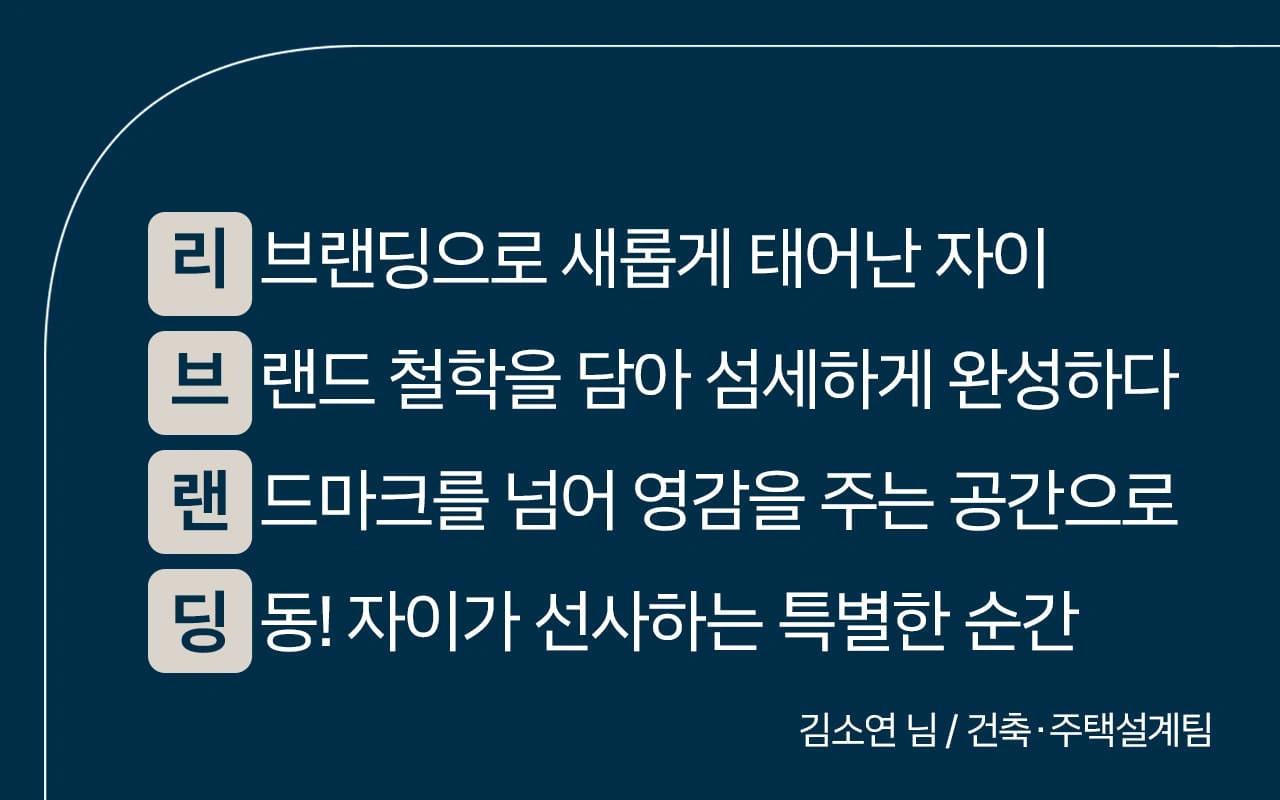 “자이 리브랜딩이 담고있는 ‘일상이 특별해지는 경험’을 많은 분들과 나누고 싶었습니다. 브랜드가 전하려는 가치에 조금이나마 공감을 전할 수 있어서 기쁩니다.”