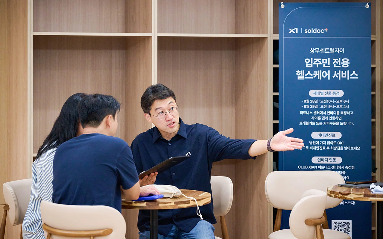 상무센트럴자이에서 진행된 <자이홈 X 솔닥 헬스케어 서비스> 행사 모습