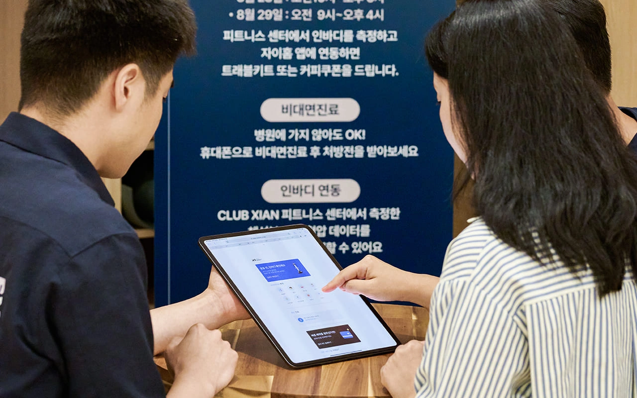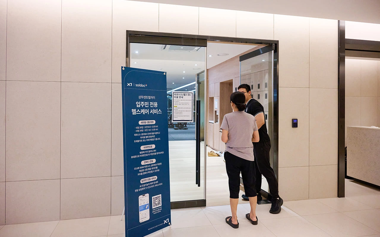 자이홈에 적용된 솔닥 서비스는 상무센트럴자이에 최초로 적용되었다. 클럽자이안의 피트니스클럽에 마련된 ‘헬스케어 Zone’에서 입주민들은 인바디 장비로 측정한 신체 데이터를 자이홈 앱에서 간편하게 확인하고, 비대면 원격 진료를 실제로 받아보며, 새로운 라이프케어 서비스를 경험하였다.