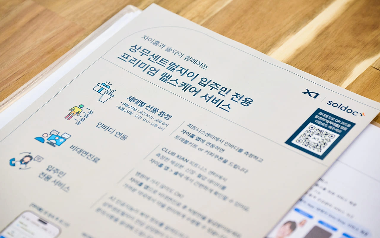 솔닥(SOLDOC)은 모바일을 통한 비대면 원격 진료와 처방전 발급까지 원스톱으로 가능한 서비스이다. 이러한 서비스가 자이홈 앱 안에 연동된 것은 주거 서비스 앱의 기능이 시설 안내와 커뮤니티 예약 등 거주의 편리함을 제공하는 것에 머무르지 않고, 사용자의 건강 관리까지 확장된 것을 의미한다. 자이 입주민은 이제 자이홈 앱을 통해서 한층 넓어진 라이프케어 서비스를 누릴 수 있다.