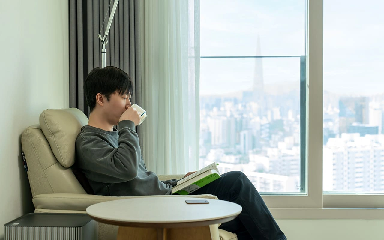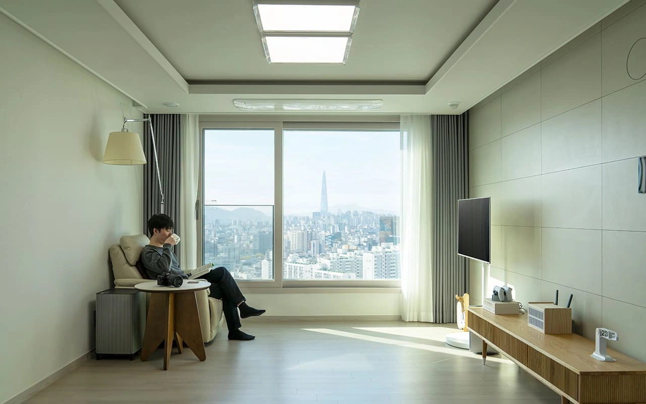 외출했다가 집에 왔을 때 누구 눈치도 보지 않고 편안하게 제가 하고 싶은 일을 할 수 있는 자유도 좋습니다. 예전에는 방에서 가장 많은 시간을 보냈는데 독립한 후에는 거실에서 보내는 시간이 많아진 것 같아요. 퇴근하고 집에 돌아와 거실의 리클라이너에 앉아 야경을 바라보며 명상을 하는 시간이 저의 즐거움이자 힐링 타임입니다.