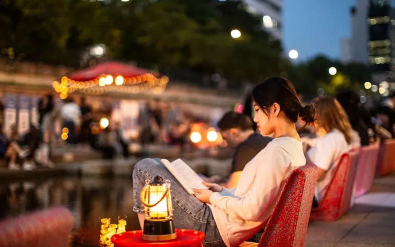 서울광장과 청계천 일대에 마련된 ‘서울야외도서관’에서 책 읽기에 몰두하고 있는 사람들. 책에 대한 뜨거운 관심을 확인할 수 있다. ©서울도서관