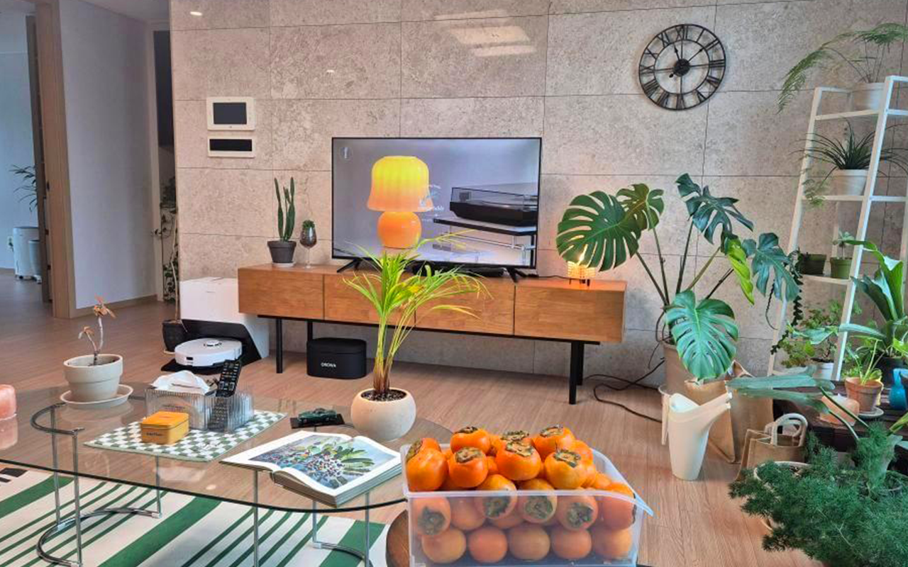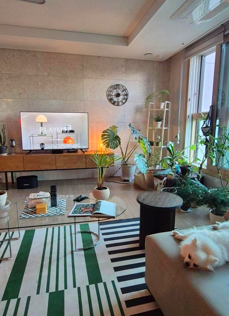 저희 집은 광안자이입니다. 우리 부부와 강아지 ‘봄이’가 살고 있어요. 집은 오랜 시간이 쌓여 나의 일상과 생각이 묻어나는 곳이라고 생각합니다. 식물을 좋아하기 시작한 후부터 거실에 화분을 놓기 시작했는데요. 식물이 하나 둘 늘어나면서 이리저리 공간을 배치하다 보니 이제는 남들에게 자랑할 수 있을 만큼의 만족스러운 거실이 되었어요. 요즘에는 창문을 열어놓고 가족과 함께 거실 소파에 앉아 음악 감상을 하는 시간이 가장 좋아요. 누구도 방해하지 않는 편안한 공간에서 사랑하는 사람들과 좋은 시간을 보낼 수 있으니까요. 가끔은 아파트 단지 내에 있는 헬스장에 가서 운동도 열심히 하고, 사우나에서 땀을 흠뻑 흘리기도 합니다. 아파트 단지 내에 편의시설이 다 갖춰져 있어서 건강한 삶의 패턴을 유지할 수 있게 된 것 같아요. 조금만 나가면 바다를 가로지르는 광안대교를 볼 수 있어 아파트 주변을 산책하는 재미도 쏠쏠하답니다. 오래도록 머물고 싶은 광안자이, 이곳에서 우리 가족도 서로를 의지하며 아름다운 추억들을 많이 쌓고 싶어요.