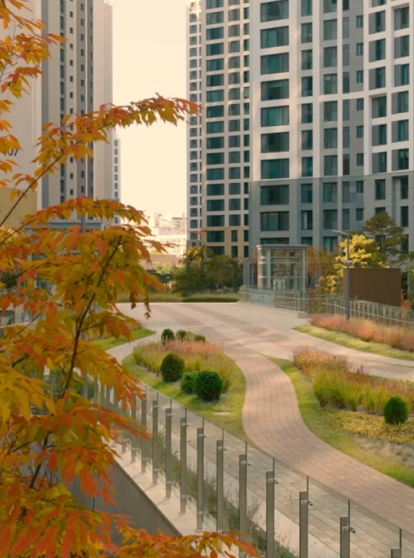 햇살 좋은 어느 가을날, 깊게 물든 메이플자이의 단풍이 도시의 풍경 속으로 조용히 내려앉는다.